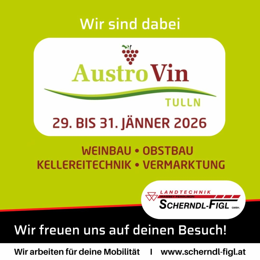 Die Austro Vin Tulln ist Österreichs führende Fachmesse für Weinbau, Obstbau, Kellereitechnik und Vermarktung und gilt als zentraler Treffpunkt der Branche. Zahlreiche nationale und internationale Aussteller präsentieren innovative Produkte, moderne Technik sowie spezialisierte Dienstleistungen entlang der gesamten Wertschöpfungskette – von der Außenmechanisierung über fortschrittliche Kellereitechnik bis hin zu Abfüllung, Verpackung und Vermarktung.