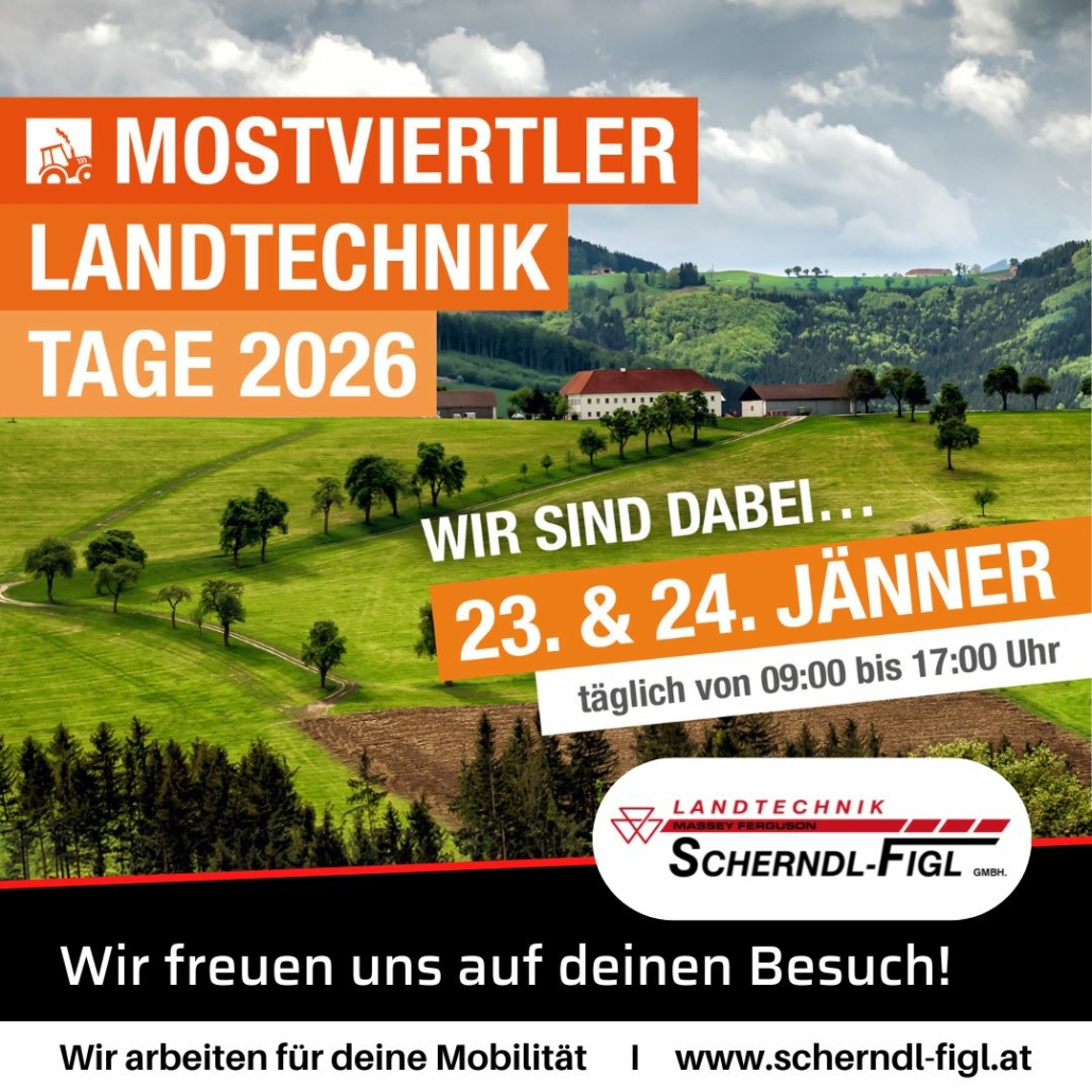 Am 23. und 24. Jänner 2026 ist es soweit: Die Mostviertler Landtechniktage öffnen wieder ihre Tore – und Sie sind herzlich eingeladen! Zwei Tage lang dreht sich bei uns alles um moderne Landtechnik, starke Maschinen und ein gemütliches Miteinander.